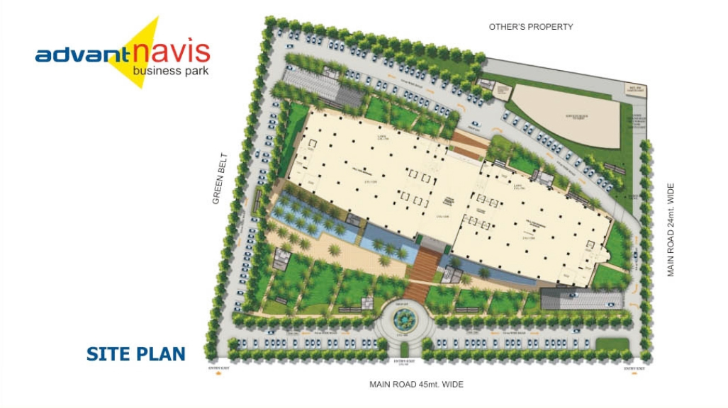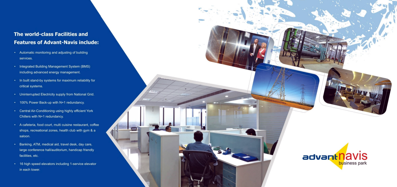 Advant Navis Business Park is a corporate landmark in Sector 142 Noida Expressway. This iconic building has highly efficient water cold chillers based air condition system. There are two towers Ready to move in Advant Navis Business Park tower A. B. and Tower C are under construction. Tower A & B is 80% occupied and having 15 story These two towers are interconnected to each other via sky bridge. Intercom Facility area 7 Lift , Maintenance staff, Power back-up, Fire Alarm, Four Security Guard Each gate. At present many MNC's like Samsung, KPMG, BHEL, NEC Technologies, S Mobile Devices, India Mart etc are performing their operations successfully. Ground Floor Food Court Dominos, Macdonald, Sager Ratna, Barista, J-Mart, Subway and HDFC BANK.